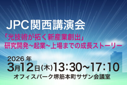 【案内】JPC関西講演会|「光技術が拓く新産業創出」研究開発〜起業〜上場 までの成長ストーリー(3月12日